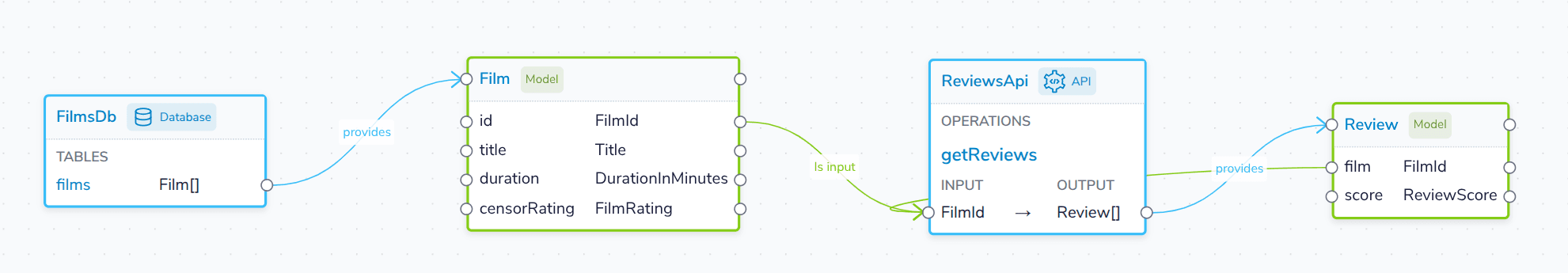 type DurationInMinutes inherits IntWe can embed these concepts inside an OpenAPI spec (most standard API specs are supported) for a service that returns information about film reviews: